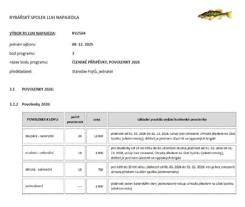 ■ O vydání povolenky rozhoduje Výbor RS Luh Napajedla na nejbližším zasedání po datu podání žádosti.